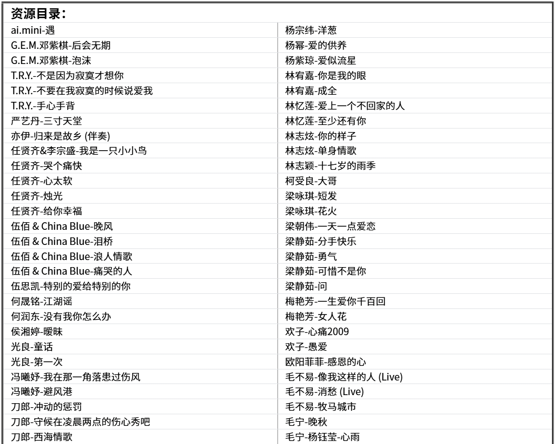 【经典伤感歌曲】盘点华语乐坛330首经典的伤感歌曲,每一首都催泪动听直触心灵[WAV+MP3+12GB] 栏目:音乐区 作者:资源坊 时间:2025-12-12 15:11:54        **简介:** 从某宝价值199的付费U盘中下载得来,330首经典伤感歌曲合集! > [!success] **资源链接** > https://pan.quark.cn/s/b864c57cddbe 版权声明:本站不存储任何实质资源,该帖为发布的网盘链接介绍帖。如您认为本站任何介绍帖侵犯了您的合法版权,请联系站长 ( 微信:tess9933 ) 进行投诉,我们将在确认本文链接指向的资源存在侵权后,立即删除相关介绍帖子!