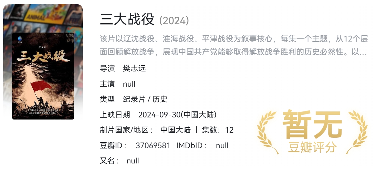 三大战役(2024)纪录片 12 集 1920*1080 超清中字 央视 7.5G 栏目:纪录片 作者:资源坊 时间:2026-02-01 05:54:55   **简介:** 该片以辽沈战役、淮海战役、平津战役为叙事核心,每集一个主题,从12个层面回顾解放战争,展现中国共产党能够取得解放战争胜利的历史必然性。以真实影像和原始文献为基础,通过采访专家和战争亲历者,用地图演示、情景再现等手段,聚焦辽沈、淮海、平津三大战役,全景式展现了那段波澜壮阔的战争历程。 > [!success] **资源链接** > https://pan.quark.cn/s/4ea32d40e403 版权声明:本站不存储任何实质资源,该帖为发布的网盘链接介绍帖。如您认为本站任何介绍帖侵犯了您的合法版权,请联系站长 ( 微信:tess9933 ) 进行投诉,我们将在确认本文链接指向的资源存在侵权后,立即删除相关介绍帖子!