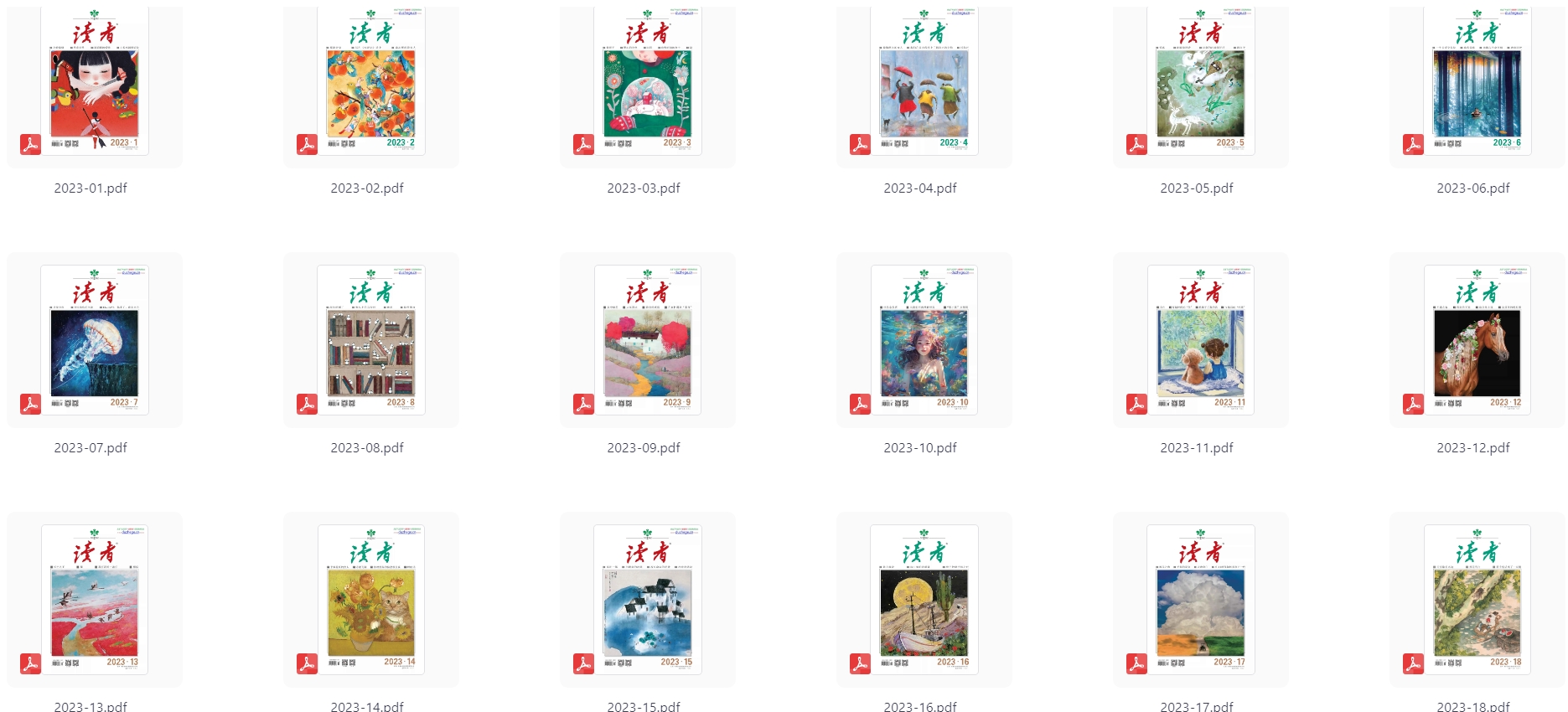【珍藏资源】1981年-2023年《读者》系列杂志电子版全合集 栏目:书籍区 作者:资源坊 时间:2025-12-28 13:47:36   **简介:** 看过读者的应该都知道,当年那可是香饽饽,每隔几天都得去书亭买一本,但是现在基本上都找不到了。我也是在各种平台上找了很久才找到了这么多,**从1981年到2023年的版本基本都全了,总共276本**,**想看的自行转存,也适合想要收藏的小伙伴,毕竟这些都是小时候的回忆,再过几年估计就再也找不到了!** > [!success] **资源链接** > https://pan.quark.cn/s/604b276edbcf 版权声明:本站不存储任何实质资源,该帖为发布的网盘链接介绍帖。如您认为本站任何介绍帖侵犯了您的合法版权,请联系站长 ( 微信:tess9933 ) 进行投诉,我们将在确认本文链接指向的资源存在侵权后,立即删除相关介绍帖子!